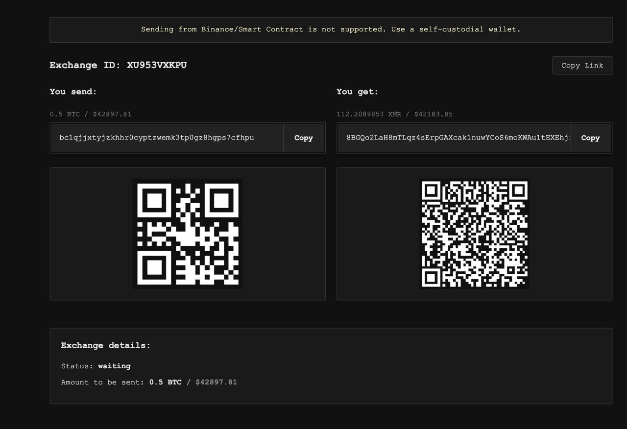 This extra step increases privacy and makes sure your Monero is fully separated from the original swap.